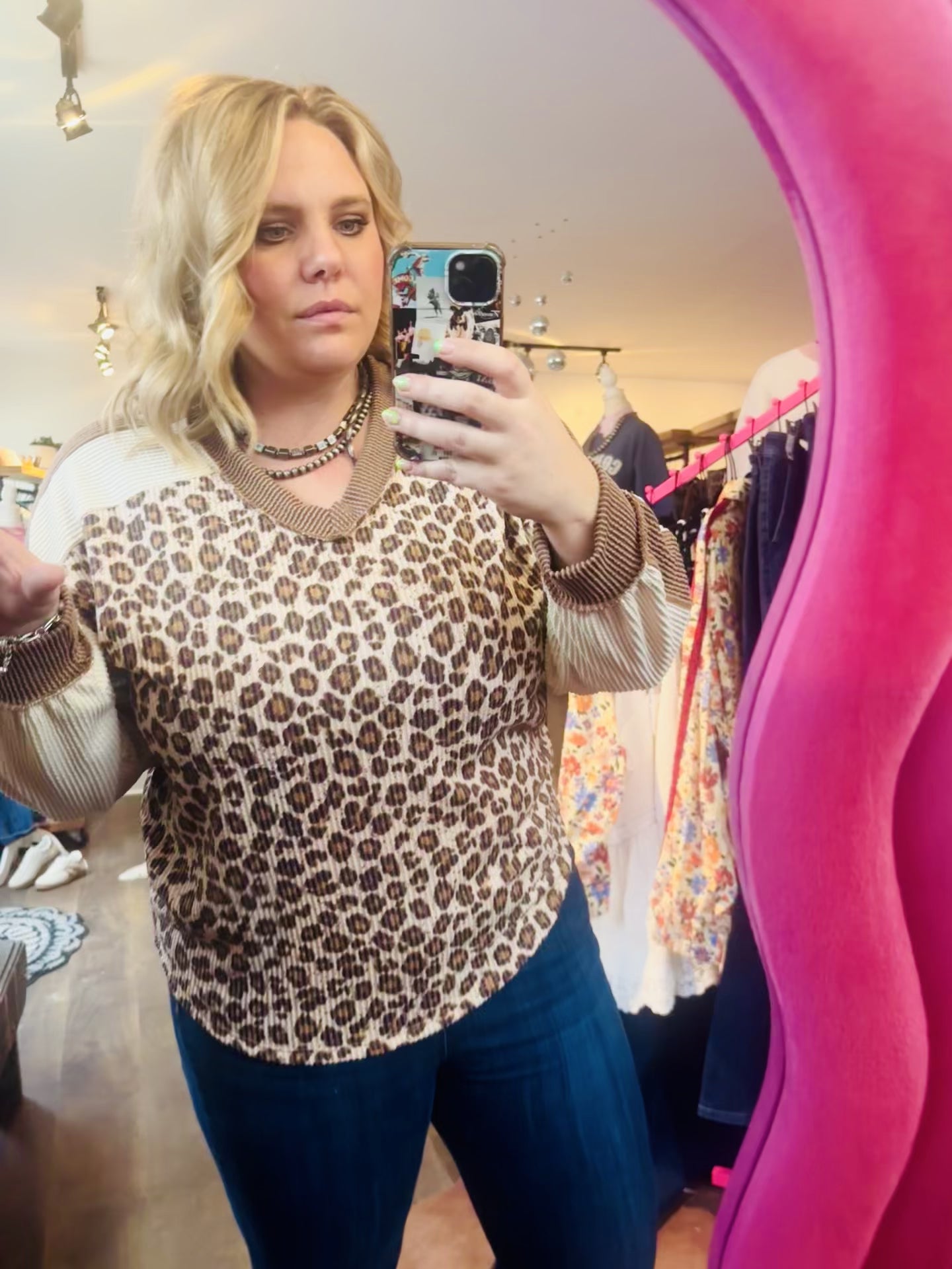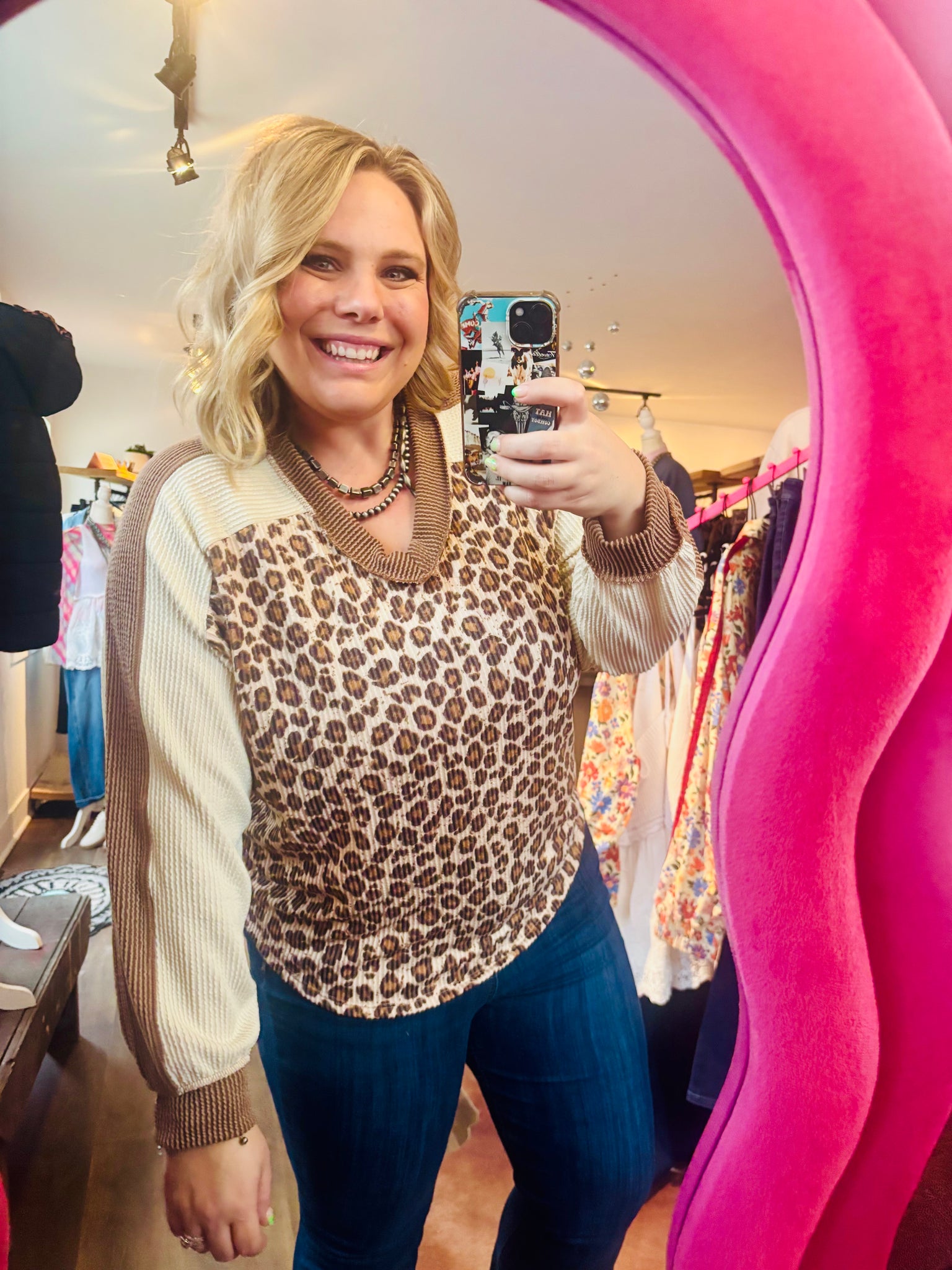 A timeless leopard print long sleeve, vneck!