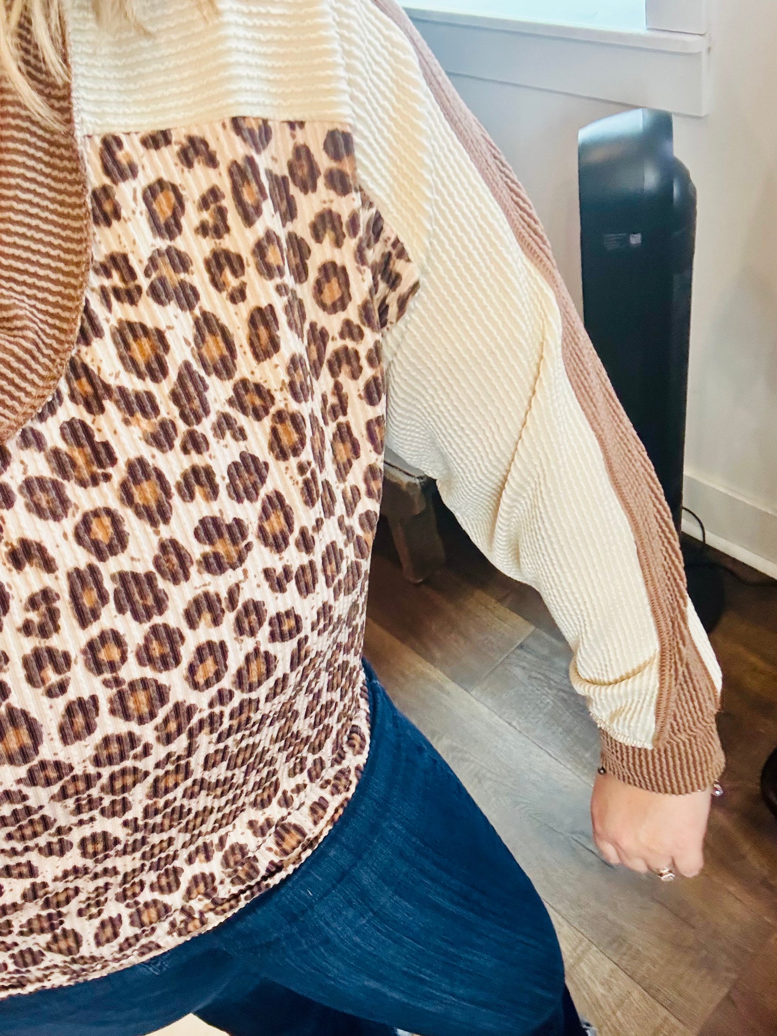 I love the block patterns of neutrals with the leopard print.